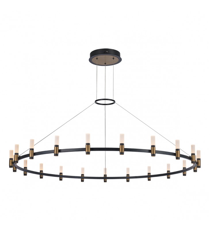 Albany-Chd-21Lt-60In-Brbm-Wh; Albany, Chandelier, 21-Light, 60\", Brass-Black Mix, White Acrylic