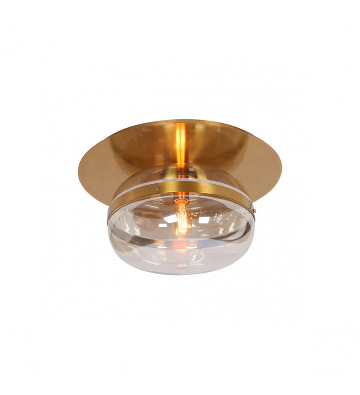 Nottingham-Fm-14In-Br-Am; Nottingham, Flush Mount, 14\", Antique Brass, Amber Glass