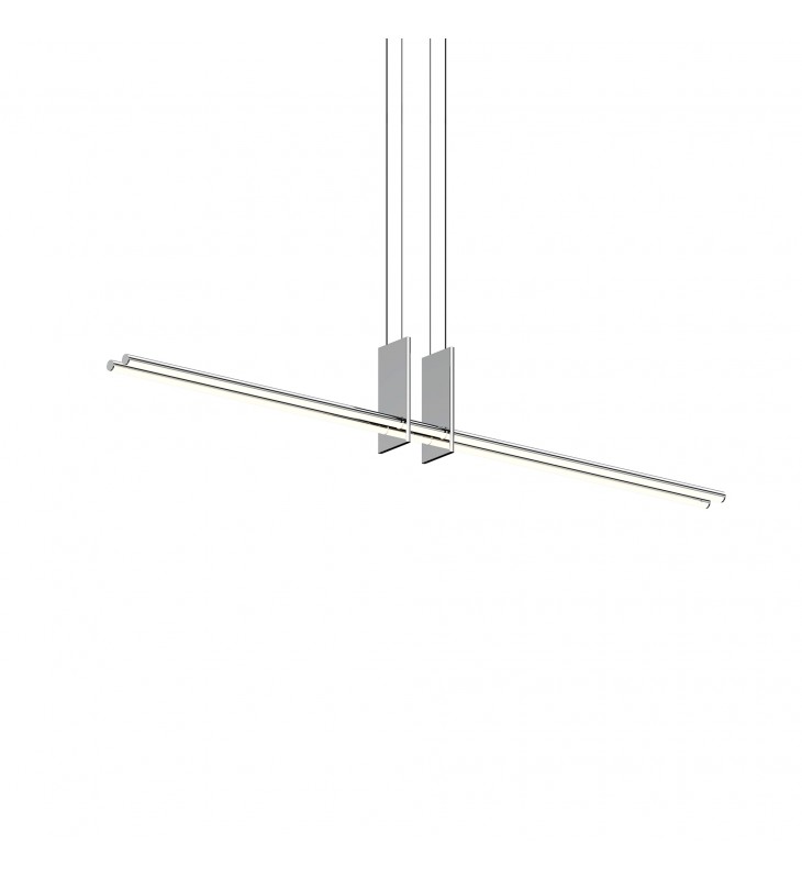 Building on the minimally scaled LED Fino Pendant, Fino Duo signals graphic architectural presence with pairs of interconnected LED Fino metal bars. Ultra-thin and minimally scaled, these slender bars deliver powerful light symmetrically along a linear path. Fino Duo Pendants are ideal above a kitchen island or long table, including dining spaces, conference rooms, and bars. A may be ordered in conjunction with multiple Fino Pendants, to seamlessly connect multiple pendants together for larger spaces.