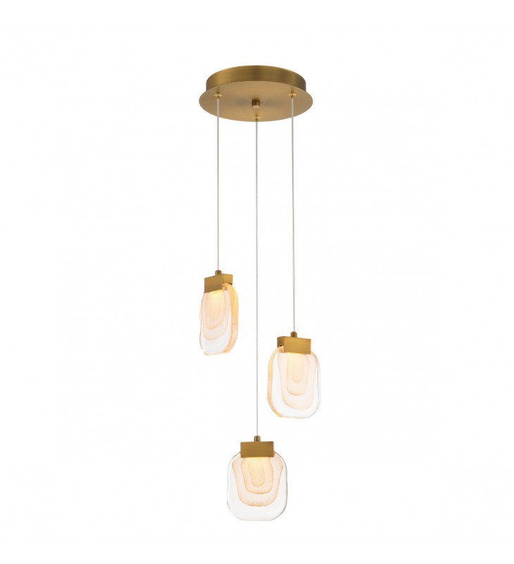 Paget-Chd-3Lt-10In-Gd-Cl; Paget, Chandelier, 3-Light, 10\", Matte Gold, Clear Glass