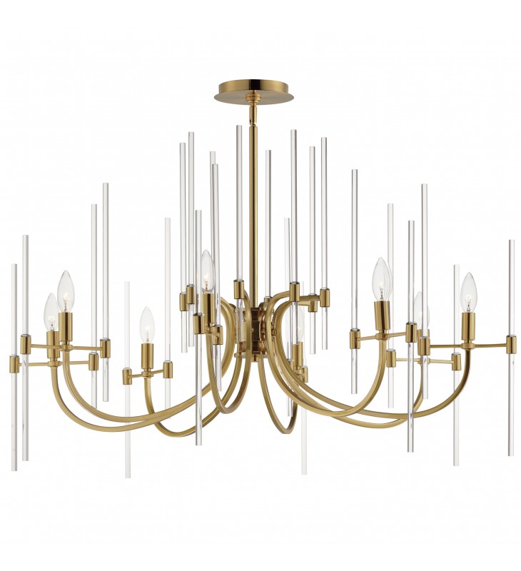 The composition of Clear glass rods are elegantly supported by thin radial arms of staggered lengths to create an iridescent motif that is truly Divine. Finished in Polished Nickel or Heritage Brass, the simplicity of this design delivers a crisp lighting fixture that works in a multitude of interior aesthetics from contemporary to traditional. Available in pendant, chandelier, and wall sconce configurations.