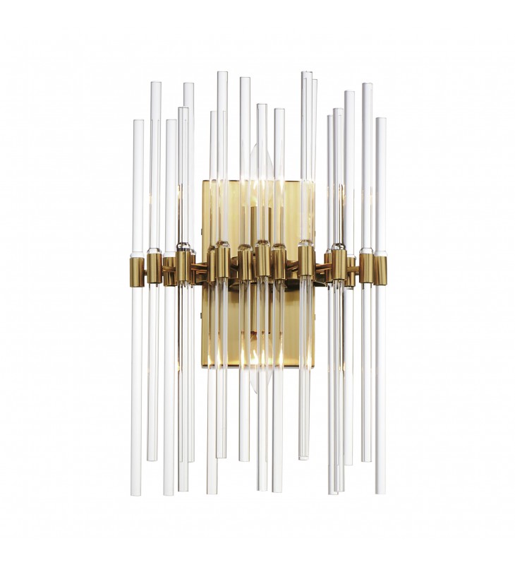 The composition of Clear glass rods are elegantly supported by thin radial arms of staggered lengths to create an iridescent motif that is truly Divine. Finished in Polished Nickel or Heritage Brass, the simplicity of this design delivers a crisp lighting fixture that works in a multitude of interior aesthetics from contemporary to traditional. Available in pendant, chandelier, and wall sconce configurations.