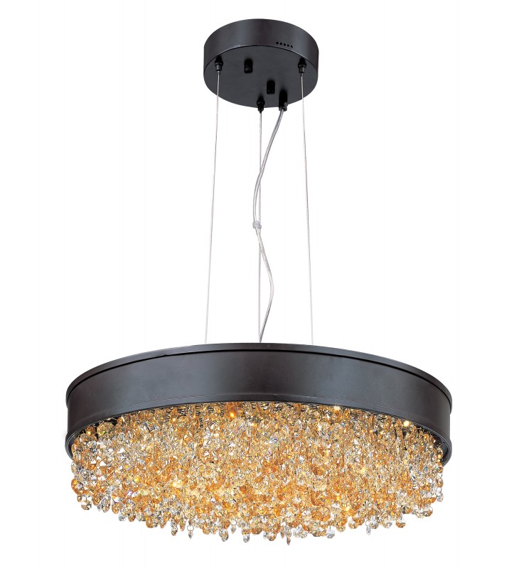 A sea of crystal strands suspend from within drums of steel which are finished in your choice of Bronze with Scotch crystal or Polished Chrome with Mirror Smoke crystal. Hidden inside the drum is a powerful dimmable LED source which has the crystals dancing in the night without any glare in your eyes.
