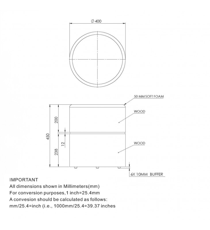Worldwide -NOVAR-ROUND OTTOMAN-CREAM - (402-670CM)
