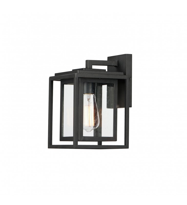 A dual framed structure creates dimension on these outdoor lighting fixtures that is both contemporary and transitional. The construction consists of two frames of square tubing and squared components. The inner frame\'s Clear Seedy glass reduces glare from the light and appears dirt-free for longer periods. This is a comprehensive collection to brighten all areas of your outdoor space, available in various sized sconces as well as hanging and post configurations.