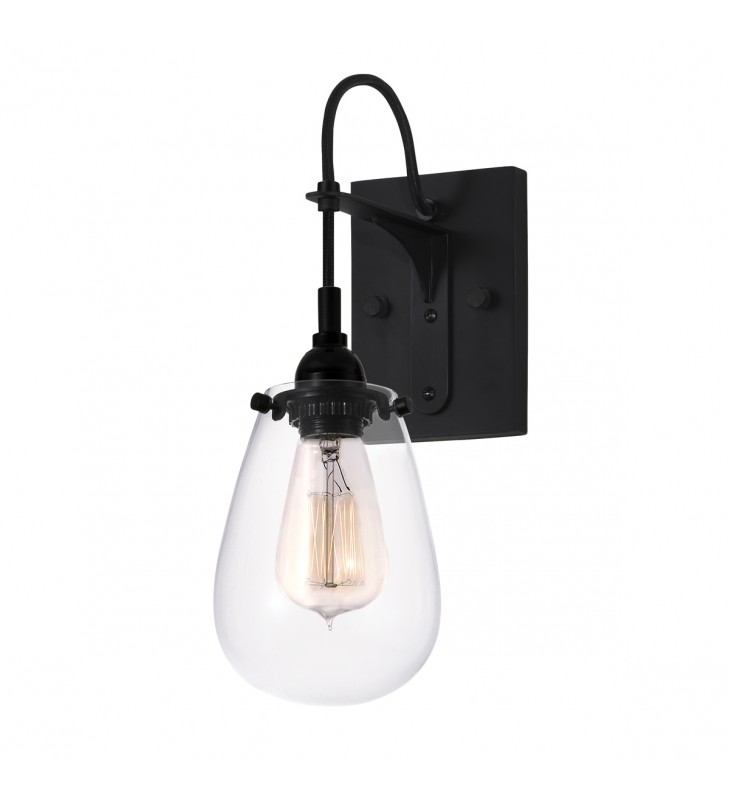 Suspended from its black braided cord and held by its industrial socket, Chelsea\'s historic carbon filament lamp is encapsulated in a voluptuous glass form that echoes its classic shape. The Chelsea Sconce\'s braided cord matches the design of Chelsea Pendants and Chandeliers.\n\nChelsea is also available as a Bath Sconce and Bath Bar.