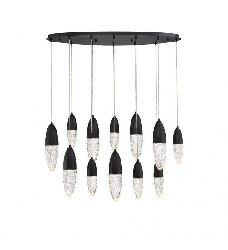 Ecrou-Chd-12Lt-44In-Blk-Cl; Ecrou, Chandelier, 12-Light, 44\", Matte Black, Clear Glass