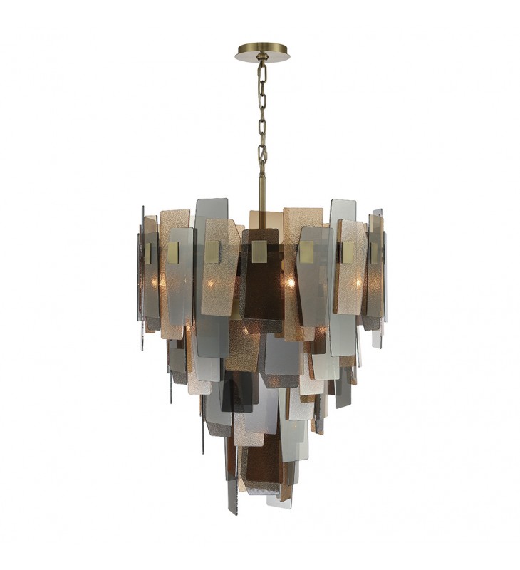 Cocolina-Chd-19Lt-42In-Br-Mx; Cocolina, Chandelier, 19-Light, 42\", Brushed Brass, Mixed Glass
