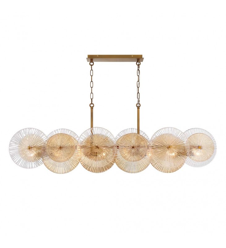 Sue-Anne-Chd-8Lt-57In-Gd-Cam; Sue-Anne, Chandelier, 8-Light, 57\", Matte Gold, Clear-Amber Glass