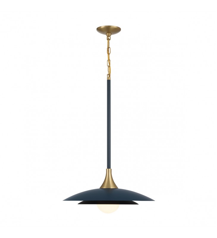 Welsh-Pen-28In-Bl-Wh; Welsh, Pendant, 28\", Matte Blue, White Glass