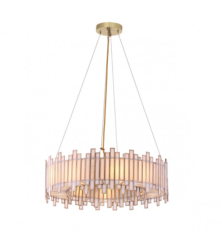 Birla-Chd-8Lt-28In-Br-Wh; Birla, Chandelier, 8-Light, 28\", Antique Brass, White Glass