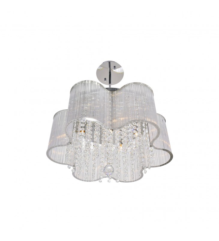 Give your space a chic and elegant update with the Spring Morning 7 Light Chandelier. Featuring a scalloped flower-shaped shade with strands of clear crystal beads at the center, this down chandelier is at once luxurious and whimsical. You can count on this light source to bring a brilliant glow to your glam pad.