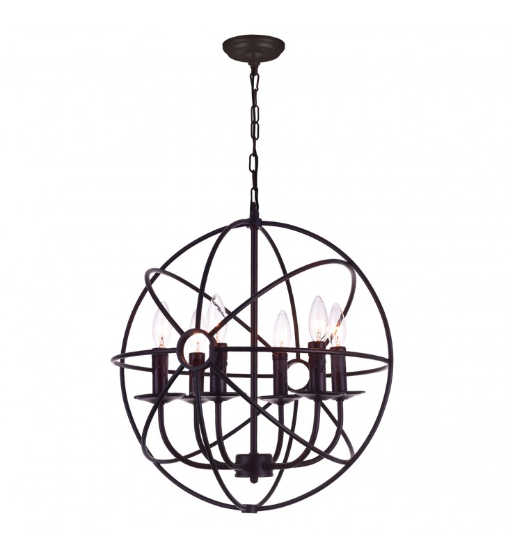 Ready to complement any rustic aesthetic, the Arza 6 Light Chandelier will bring dramatic illumination to your space. This 18 inch open orb chandelier features six candelabra arms complete with drip pan. Pair this with candelabra bulbs with flame tip for that cool, vintage-y charm.