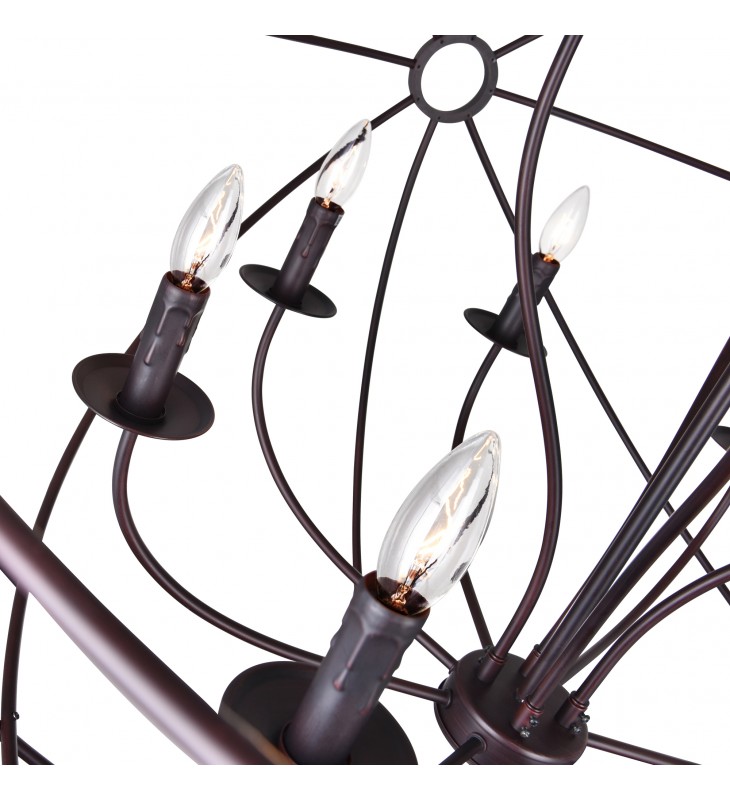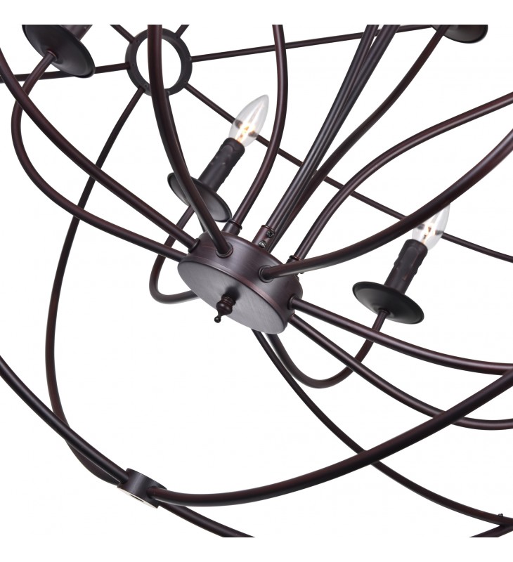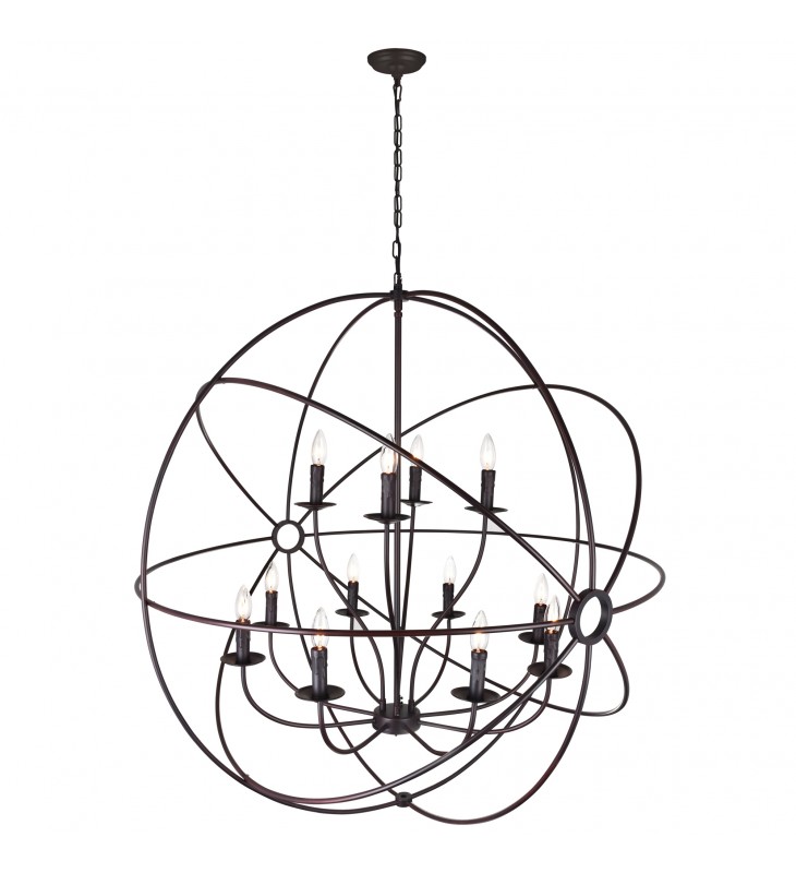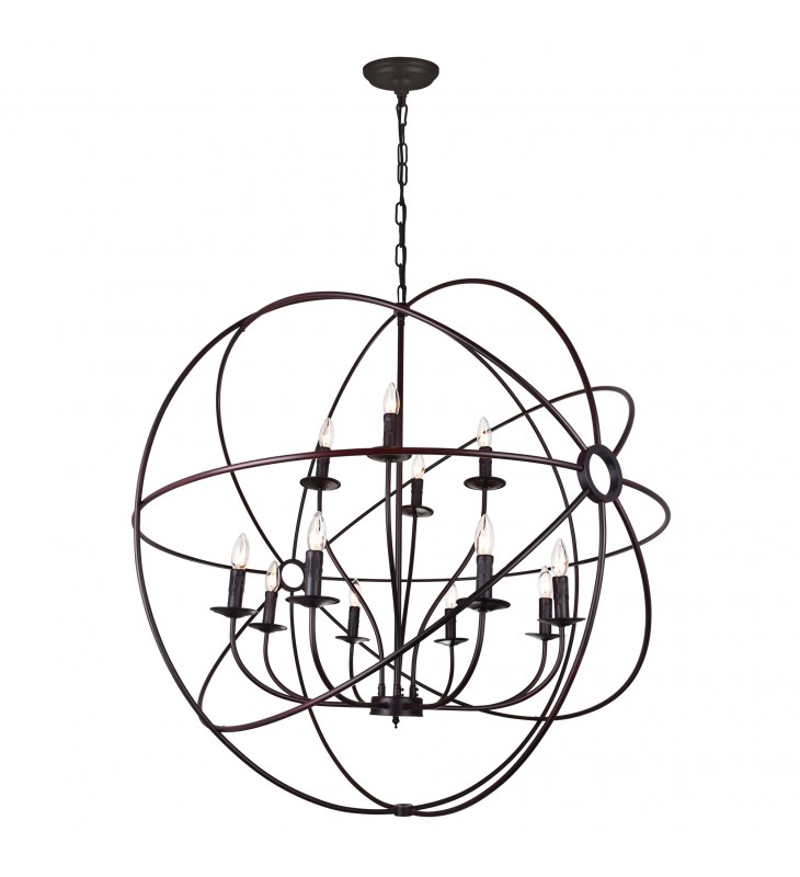 Designed like a cosmic collision reminiscent of planetary rings circling a source of light, the Arza 12 Light Chandelier makes for a striking focal piece in your living room. The brown iron encasement in open cage-like silhouette allows light to pass through without interference. This oversized up chandelier looks simply rustic yet extremely elegant with its uncluttered look.