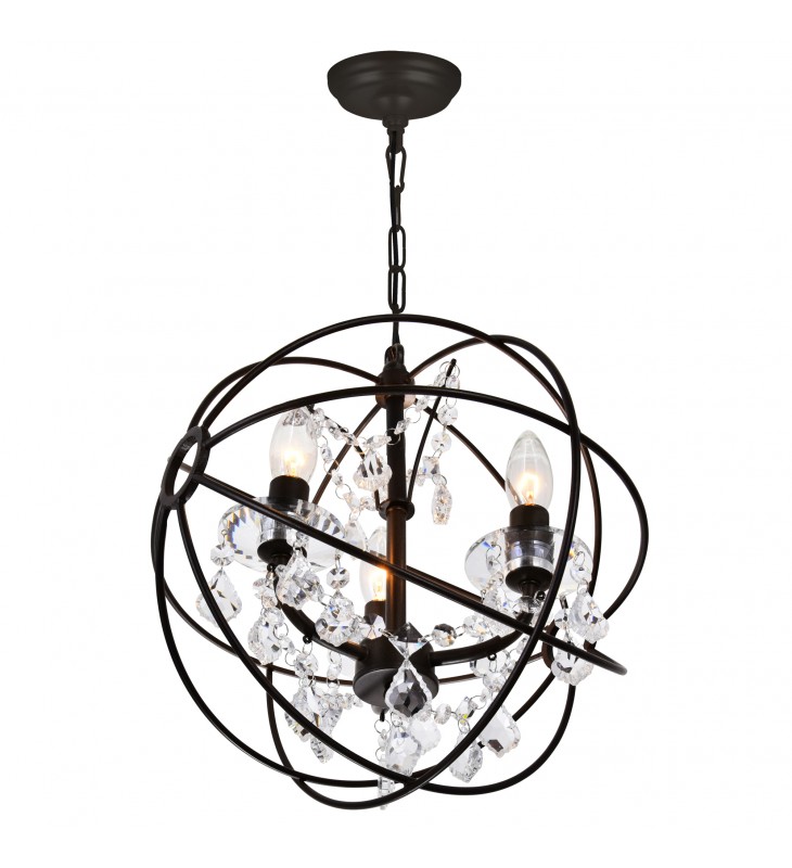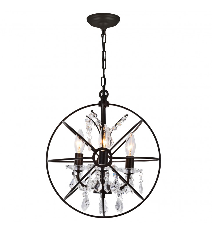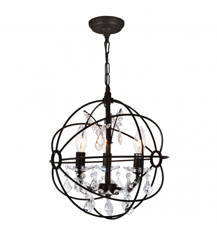 The Campechia 3 Light Pendant beautiful displays the eye-catching aesthetics of an ornate orb. This up mini chandelier exudes a rustic vibe with a luxe twist. The 13 inch round cage-like shade houses candelabra bulbs and dangling crystal beads. Consider this a beautiful and functional light fixture that will breathe rustic refinement to your living space.