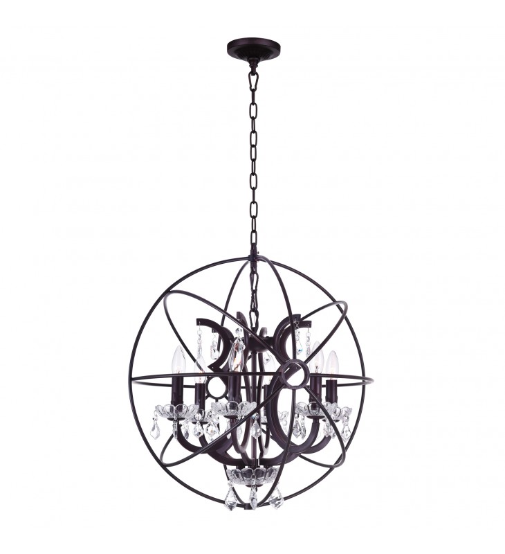 Make a statement with this gorgeous orb chandelier. It has a beautiful spherical cage adorned with a candelabra base with clear crystal candelabra plates and dangling embellishment. Perfect for the living room, dining space, entryway, or even the bedroom, this Campechia 6 Light Chandelier will be one dramatic and functional piece of home jewelry that your place will benefit from.