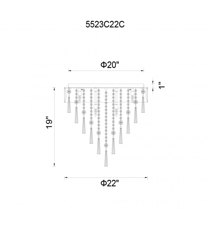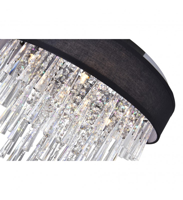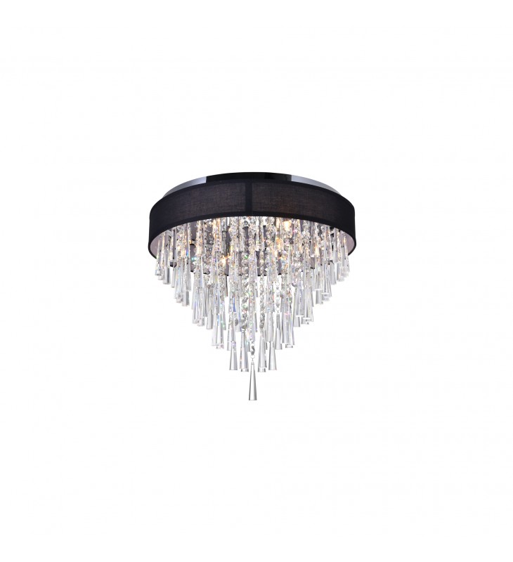 A light fixture and a d??cor statement in one. The Franca 8 Light Flush Mount displays its brilliance when turned on, and even when turned off. Hanging from a 22 inch circular shade, in black or off white, are tiered pieces of conical glass tubes and clear crystal strands. Light is emitted by eight bulbs and reflected beautifully by the crystal drops.