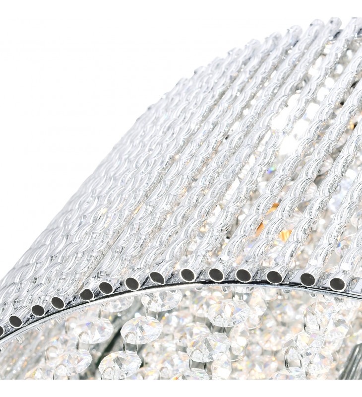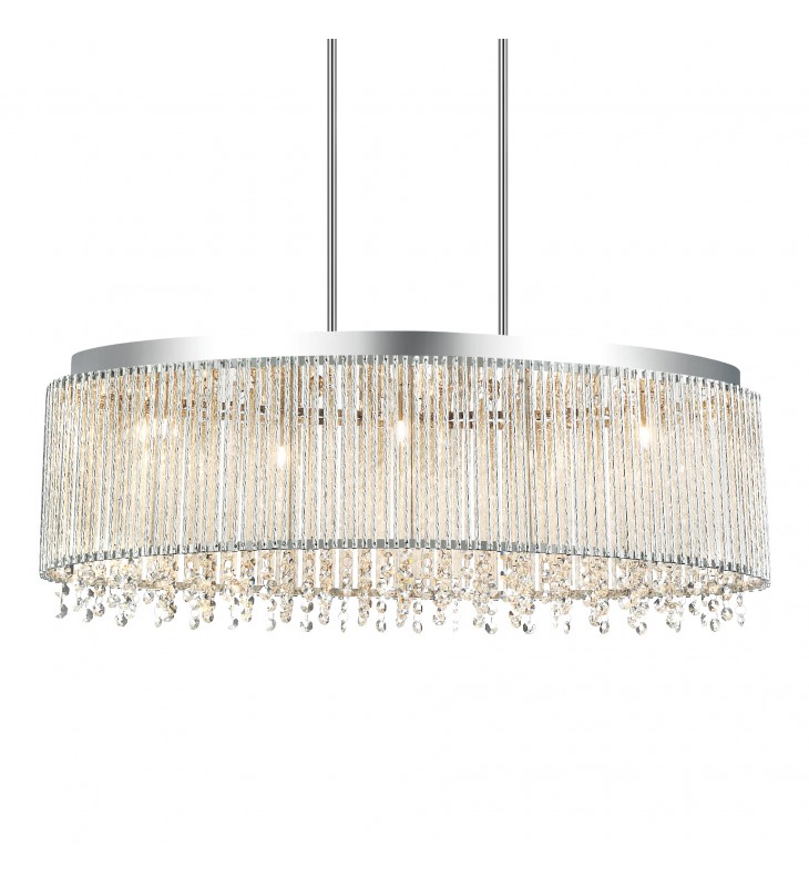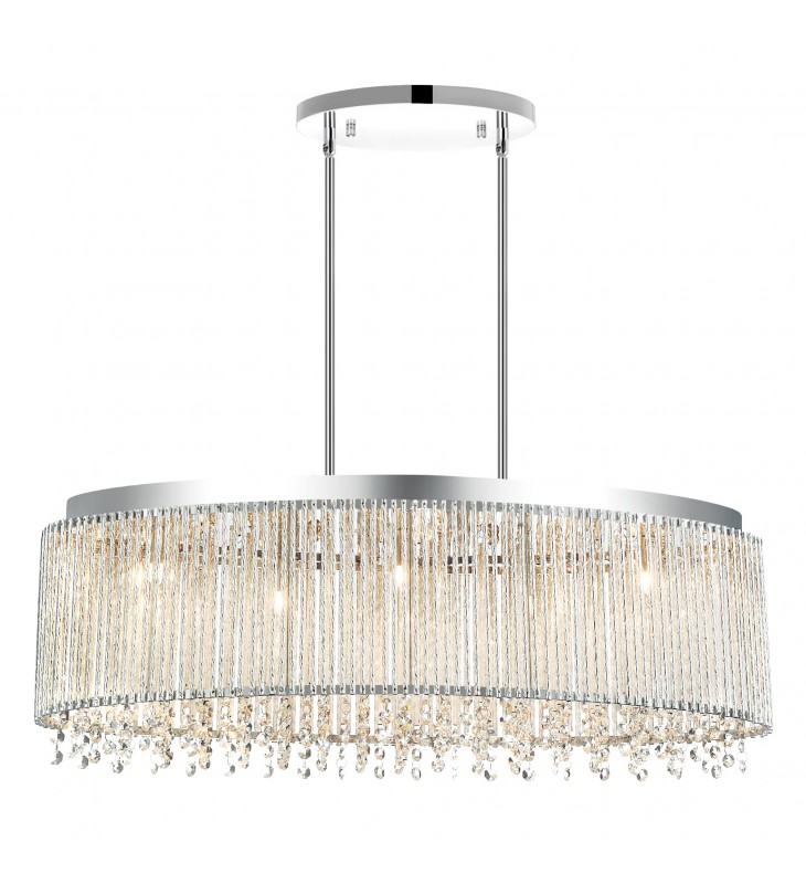 Incorporate the Claire 5 Light Chandelier in your living space and get the high-end look you dream of without spending a fortune. This breathtaking light fixture displays an oval drum shade with chrome rims and frame. It drips from the inside with clear crystal beads that cast a soft, luxe glow to the room.