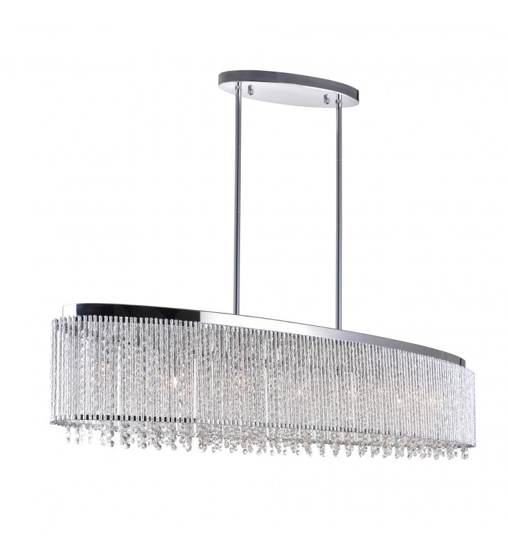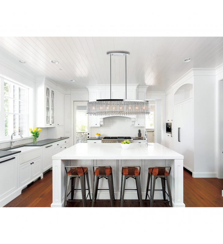 A little change in lighting can make a huge difference in a room. Take this Claire 7 Light Chandelier for example. When placed over a dining table, this 46 inch wide drum shade chandelier will bring a glistening glow to dinners. The oval frame from which crystal drops drip has a chrome finish that will match any modern dining space. The luxe look of this lighting option will also complement the classy marble countertop in a kitchen island.