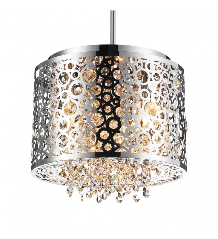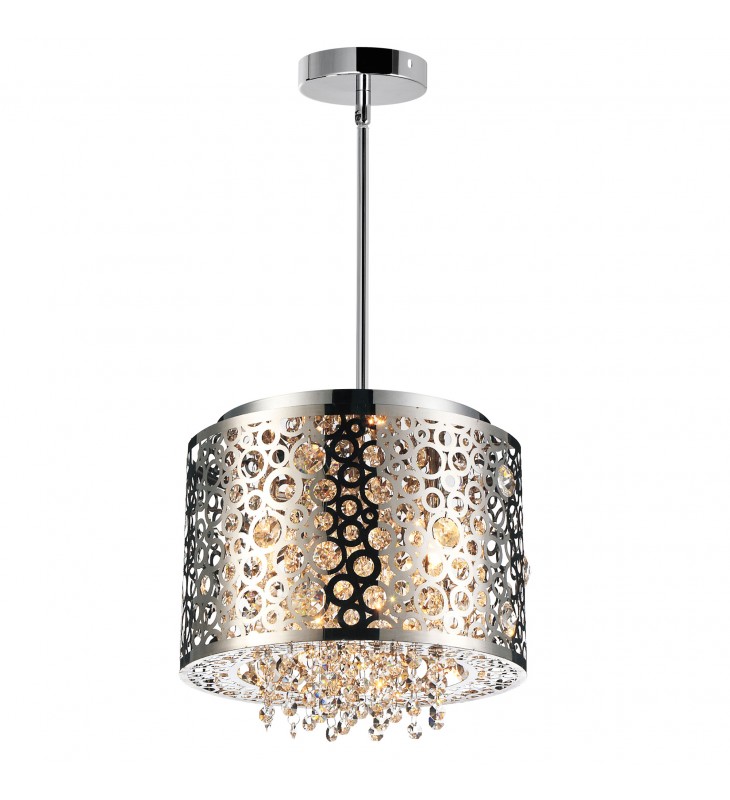 Look at those strands of shimmering drops hanging from a chrome-finished drum shade with bubble cut-outs. It\'s the perfect marriage of whimsy and elegance making this Bubbles 4 Light Pendant a playful choice when updating your modern space. This 12 inch drum shade mini pendant is sure to give your interiors a surprising edge.