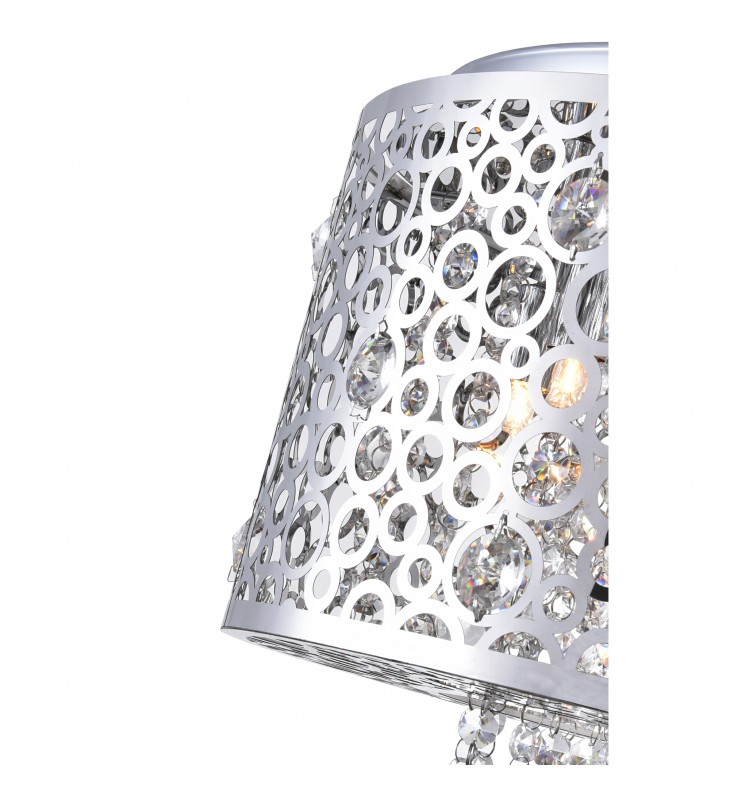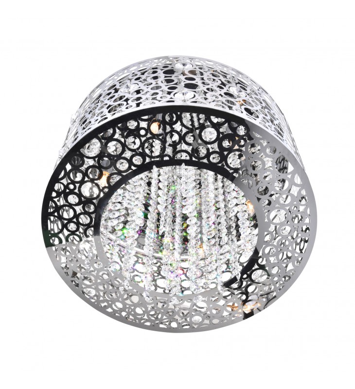 The Bubbles 6 Light Chandelier is set to add polished elegance to your space. The metallic finish complements the bubble theme showcased by the cut-out pattern on the circular drum shade and the dangling strands of tiny crystal balls. This 16 inch modern drum shade chandelier will give your dining room, living room, kitchen, or bedroom a contemporary chic look.
