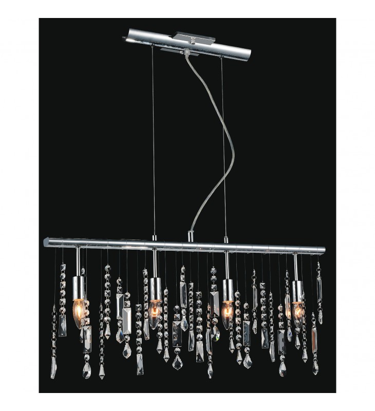 Enliven a dining or cooking area with shimmering light coming from this 30 inch wide light fixture. The Janine 4 Light Chandelier features crystal drippings gliding gracefully down a slender linear frame in chrome finish. This glam light impressively combines great style with practical function. No doubt, this piece deserves a spot in your modern home.