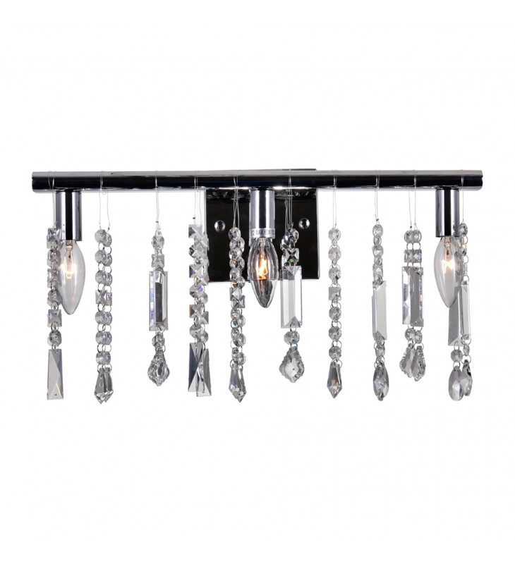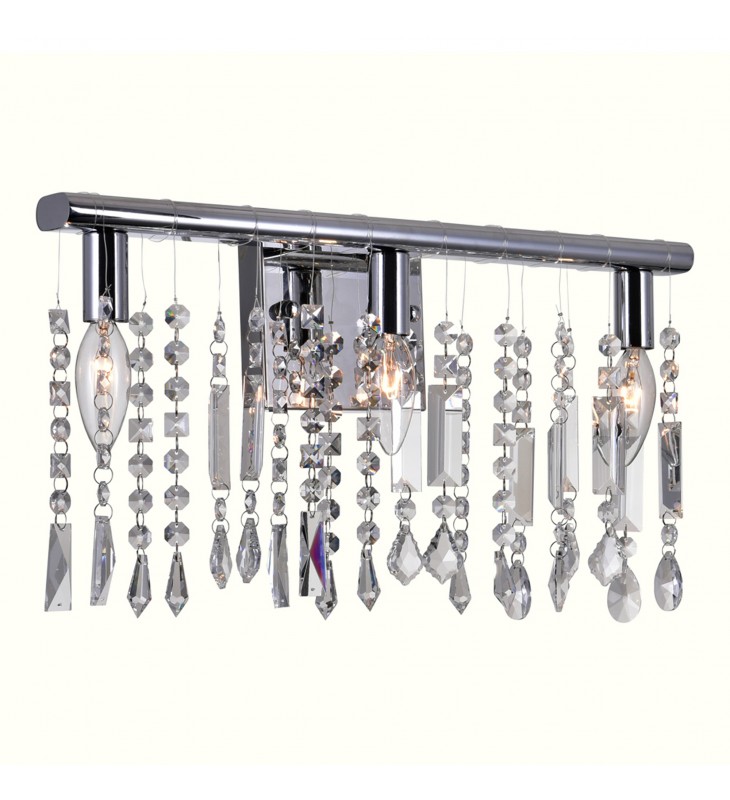 Expect this wall-mounted light source to provide brightness in a captivating and at the same time inviting manner. The Janine 3 Light Wall Sconce is designed with a chrome-finished metal frame holding three candelabra bulbs. Concealing the light source in an elegant way are multi-faceted crystal strands that refracts light in different directions.