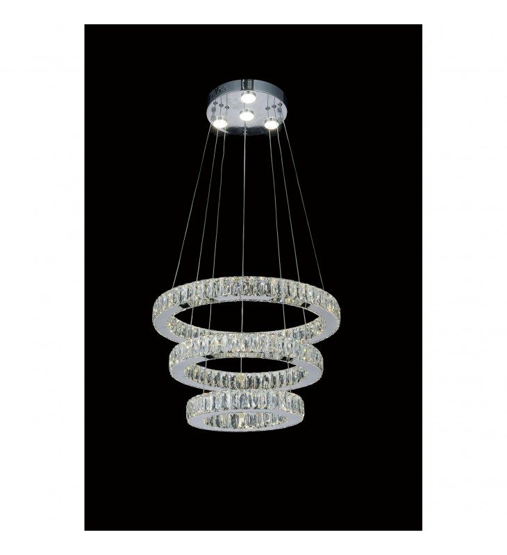 The Florence 3 Tier Ring LED Chandelier will give your space that Hollywood glam vibe. This glam light fixture has sparkling crystal beads on three concentric rings. Built inch LEDs diffuse bright, opulent light. Hang this in your foyer, stairwell, or high-ceiling living room for a brilliant impact that no one will forget.
