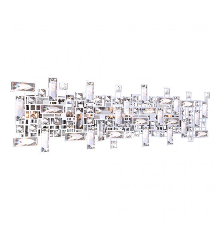 The modern allure of this transitional light source will bring a punchy update to your classic home. The abstract sculpture of overlapping crystal panels will earn your space some big style points. This horizontal wall sconce will look perfect not just as a vanity light but also as light accent in your living room or dining room.
