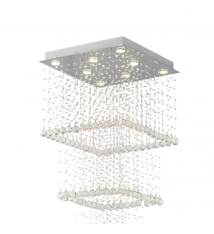 The Square 8 Light Flush Mount would make a stellar statement piece in your living room, entryway, or stairwell. This close-to-ceiling chrome-finished light source has four square tiers of crystal strands finished at the bottom tip with a single crystal ball drop. The fanciful design that sparkles day and night can clearly provide pizzazz to any space.