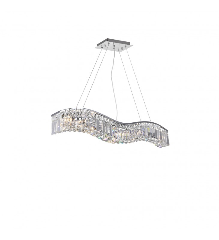 Add a burst of depth to those drab, washed-out walls in your dining room with this 36 inch Glamorous 7 Light Chandelier. This oversized light source features a chrome-finished metal base requiring candelabra bulbs. Dangling from the sides and underneath are faceted bars and balls of crystals that diffuse light. This down chandelier will make for a glam update to modern, contemporary, and transitional spaces.