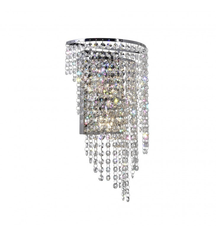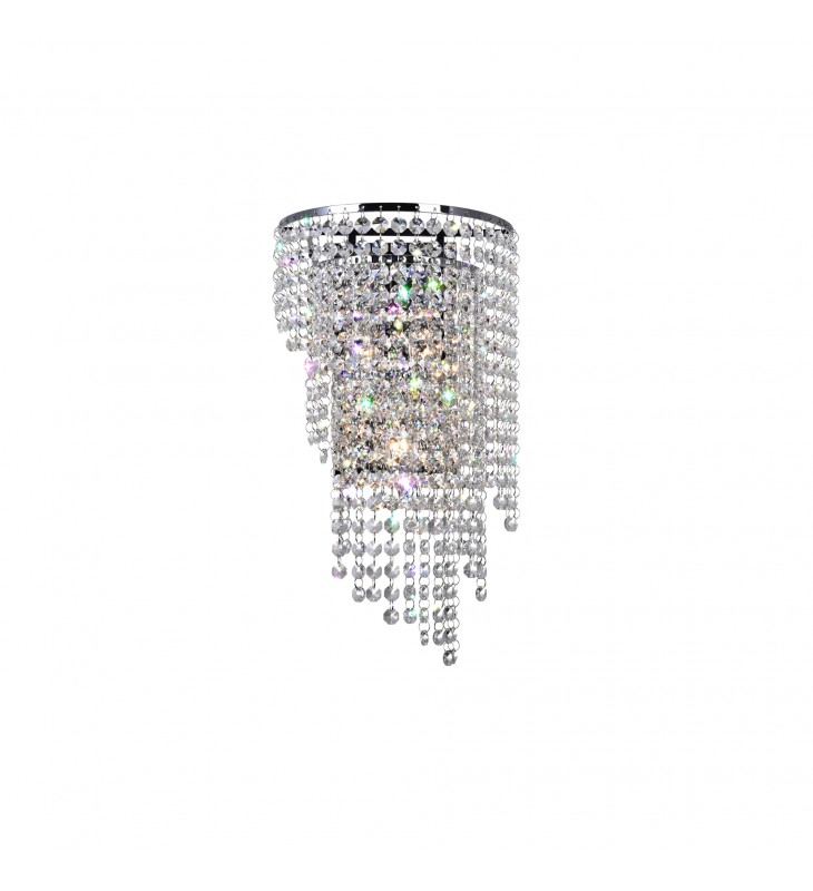 The Prism 3 Light Wall Sconce is a sight to behold. On its rectangular wall plate in polished chrome is an arm to hold three candelabra bulbs. Covering the light source is a curtain of shimmering crystal beads. This wall-mounted glam light is perfect for adding a hint of opulence to stereotyped areas like bathrooms and hallways.