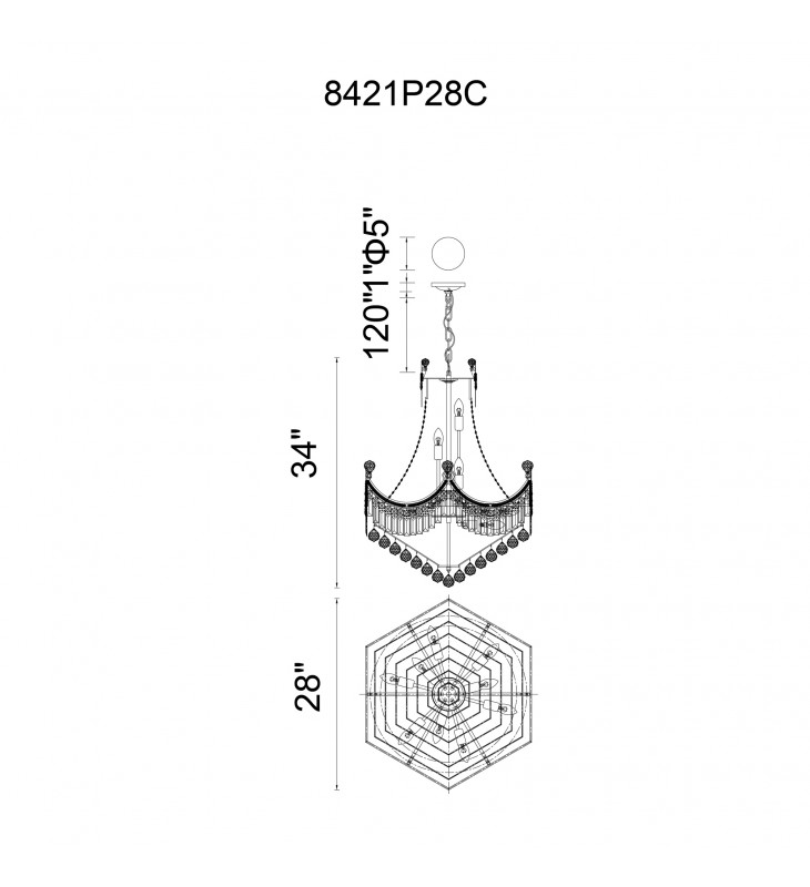 Amanda 15 Light Down Chandelier With Chrome Finish (8421P28C) - CWI