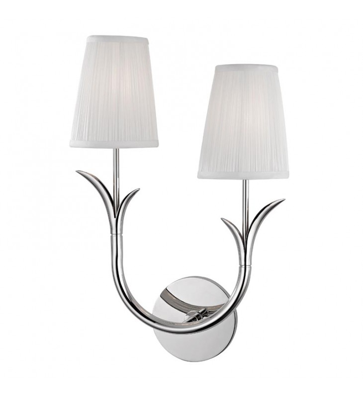 Deering? arm imitates new life growing on a stem, reminding us that hope springs eternal. Fine details and silk pleated shades add to this sconce? immediate impression of elegance and grace. Nature? unassailable design sense meets machined precision for an endearing fixture.