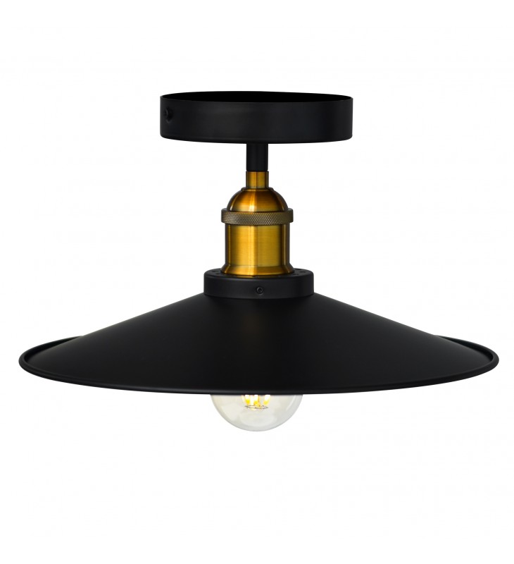 Ready to infuse a sleek yet industrial look to your space is the Brave 1 Light Flush Mount. This black and brass lighting requires an E26 Edison bulb to accurately depict a rustic, vintage flair. The cone-shaped shade has a flared edge and a flatter silhouette to ensure that the exposed bulb will also garner attention. This 13 inch wide light source is perfect for areas with low ceilings and narrow spaces like hallways in need of task and accent lighting.