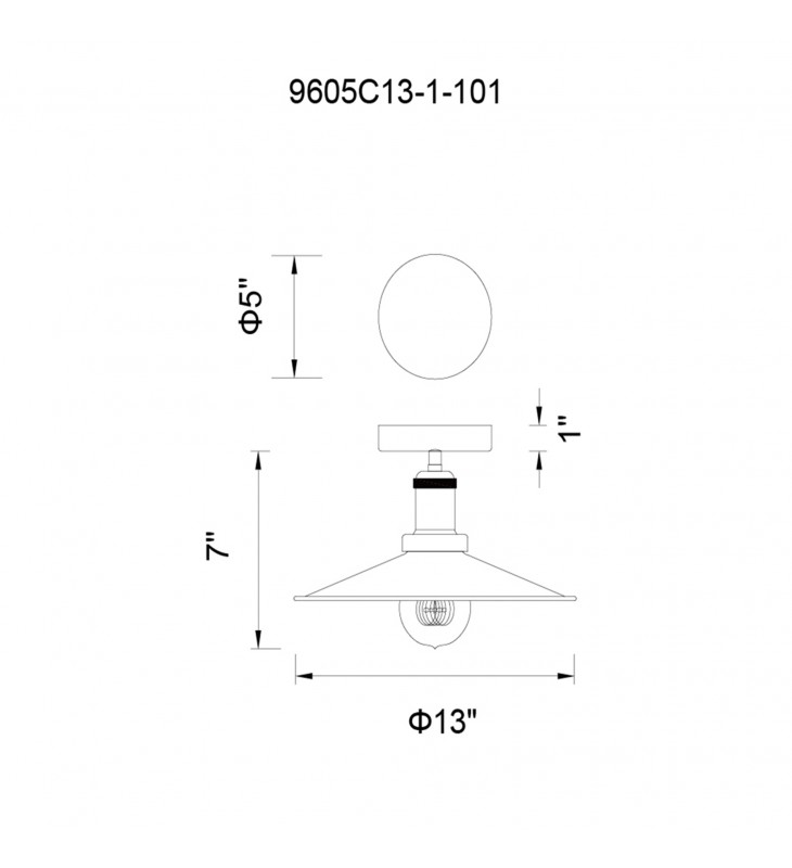 Brave 1 Light Flush Mount With Black Finish (9605C13-1-101) - CWI