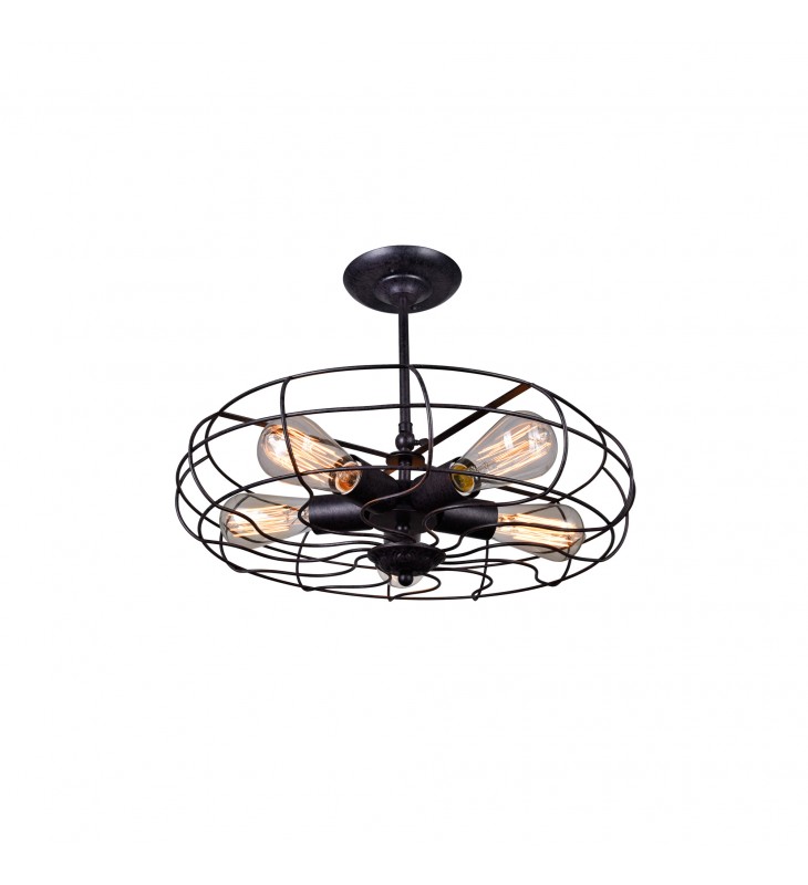 Who says chandelier lights have to be taken seriously? Pick a fun choice and install the Pamela 5 Light Chandelier. Reminiscent of a vintage cooling fan, this light fixture displays an open metal cage frame with bulbs positioned like fan blades. Available in three rustic vintage finishes - antique copper, black, and rust - this light source will define the character of your interiors.
