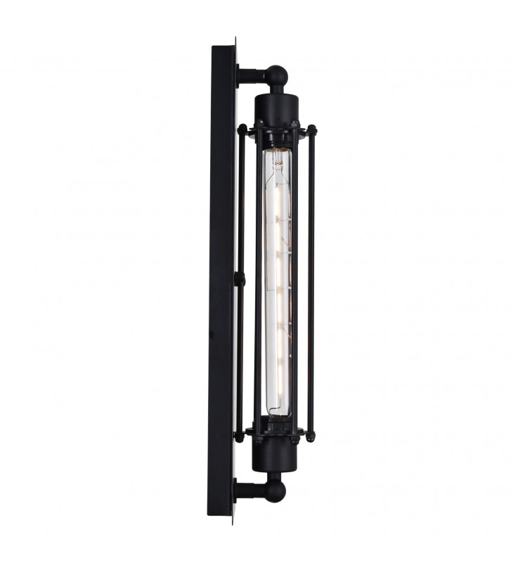 Exhibiting sleek modernity and old world charm, the Kiera 1 Light Wall Sconce would make a great addition to an industrial-styled space. On a black metal wall plate is a pipe-like open frame holding an elongated filament bulb. This light source delivers light that\'s subtle, soft, and warm perfect for bringing in a dark, moody, and character-rich ambiance to your home.
