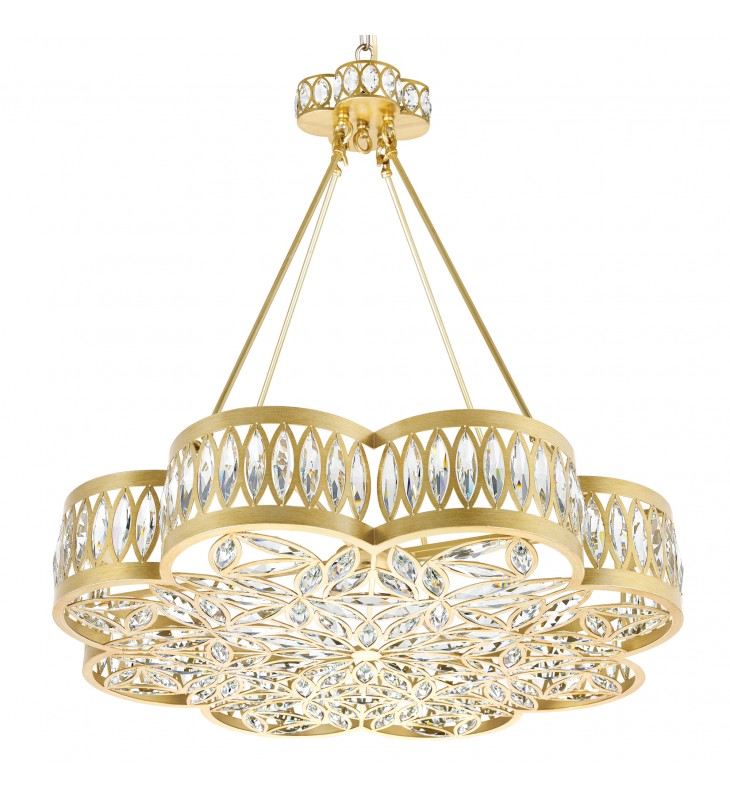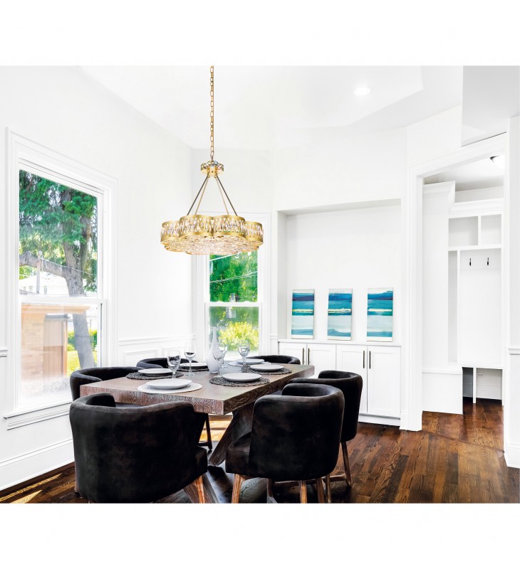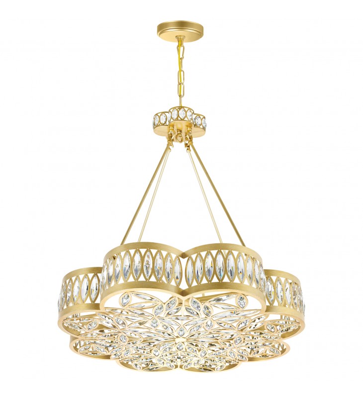 If pastels and frills are not your thing but you want to give a room a feminine feel, then pick the Nova 8 Light Chandelier. This 31 inch champagne-colored light fixture is designed with a metal frame in a floral outline. Beveled pieces of clear glass provide this chandelier with a subtle feminine texture. This is the chandelier that will light up a room with a humble glow and a tailored elegance.