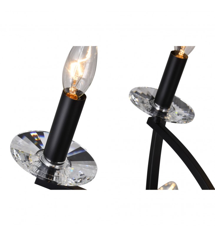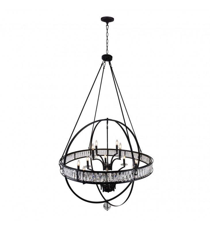 The Arkansas 12 Light Chandelier in Black is a lighting classic that will add beauty and elegance to your space. While it features a traditional silhouette, this light source with an orbital frame exudes a strong industrial vibe. Softening its open metal frame is a band of faceted crystals running through the center and glowing stunningly together with the candelabra bulbs.