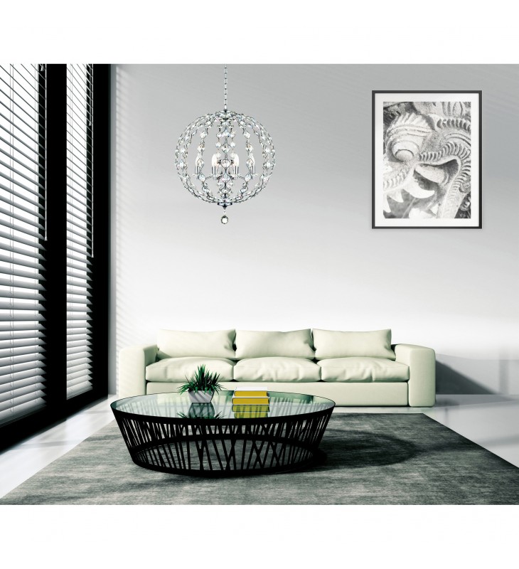 Looking for an attractive light fixture for your office or guest room? Get the Esia 8 Light Chandelier. Its spherical elegance and curvy wire pattern complements the clear crystal accents and the lustrous light given off by the candelabra bulbs. You\'d be impressed by how such a simple silhouette can make a big difference in a room.
