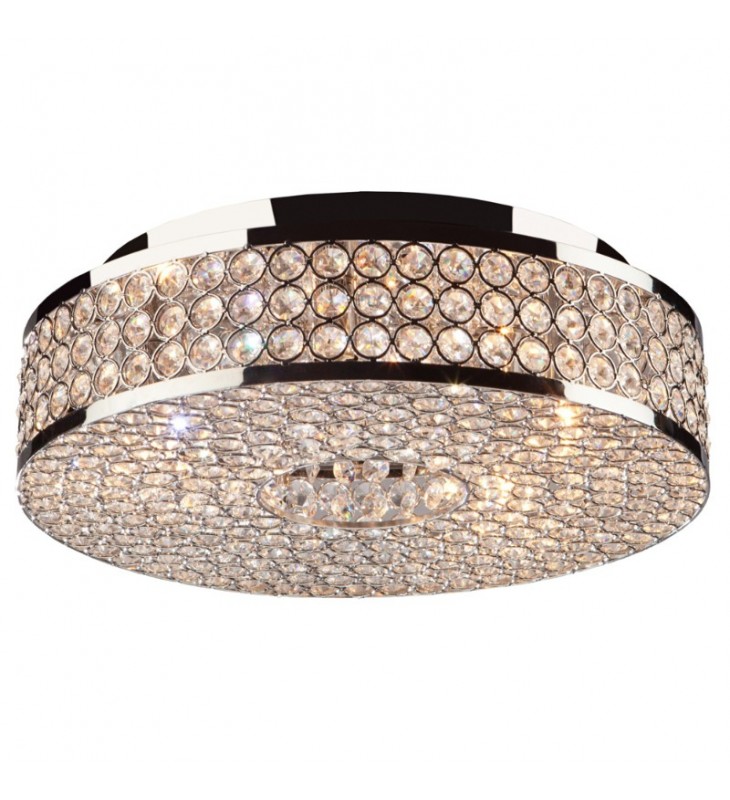 The \"Bella Vista\" Collection features a chrome plated frame with circular crystal jewels composing the frame. The G9 halogen light helps make the crystal shine throughout. Circular flush mount model\nDue to the California Title 20 regulations, replaceable light bulbs will not be included with any product sold to customers in California.\n \n \n \n