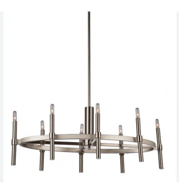 The \"Encore\" collection, features precise thin candles on circular airy frames. This light design is pleasing to the eye and comes in two finishes. Shown in oil rubbed bronze and available in a plated polished nickel as well. (Extra rods included for easy height adjustment, and hand straight for sloped ceilings.)\n \n \n \n