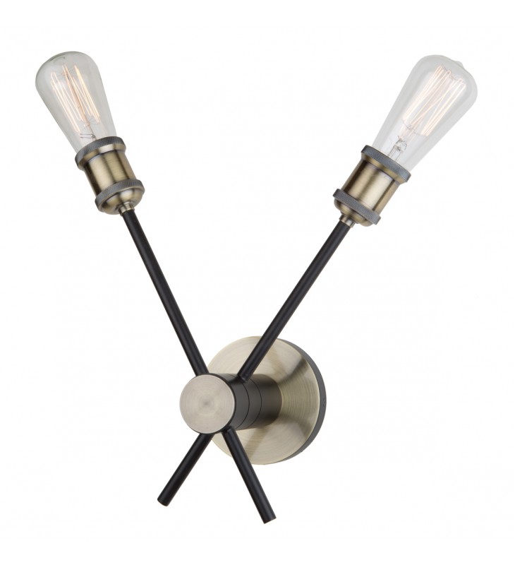 Modular in design, the \"Tribeca\" series elegantly adopts the beauty of retro Edison bulbs (not included). This version has a trendy two tone color factor. The frame is matte black while the socket cover, arm connectors and part of the canopy are in plated satin brass. An instant classic which brightens up any area. Two light wall sconce shown.\n \n \n \n