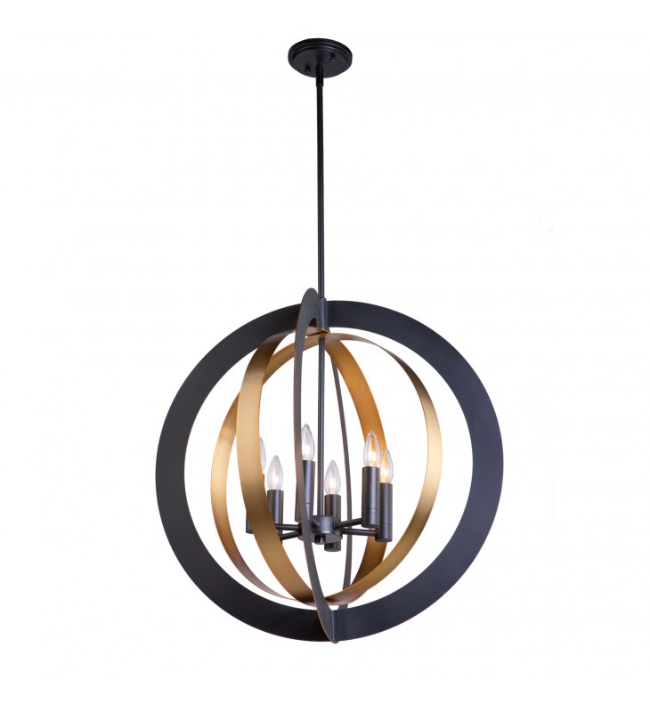 The \"Capri Collection\" is truly a unique orb type design. Designed by the \"Lighting Pulse\", this two tone fixture features a dark brown exterior and a satin brass interior. (Comes with extra rods for height adjustment and hangstraight for sloped ceilings)