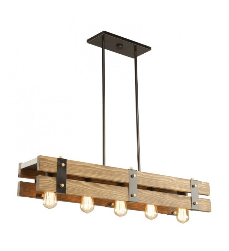 Setting the trend, the linear chandelier from the \"Barnyard Collection\" is simply stylish. Natural type wood finish, dark brown metal work and satin brass nobs. Rods are extendable. Hand made in North America with pride.