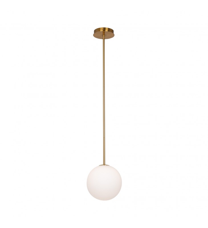 The Aurelia Collection is defined by its contemporary allure, featuring a warm brushed brass frame. Each arm of the chandelier is adorned with beautiful spherical white glassware, creating a visually striking contrast and emitting a soft, inviting illumination. This collection seamlessly marries sleek design with a warm aesthetic, making it a stylish and captivating addition to any space. Single light pendant shown (height adjustable via extra rods included)