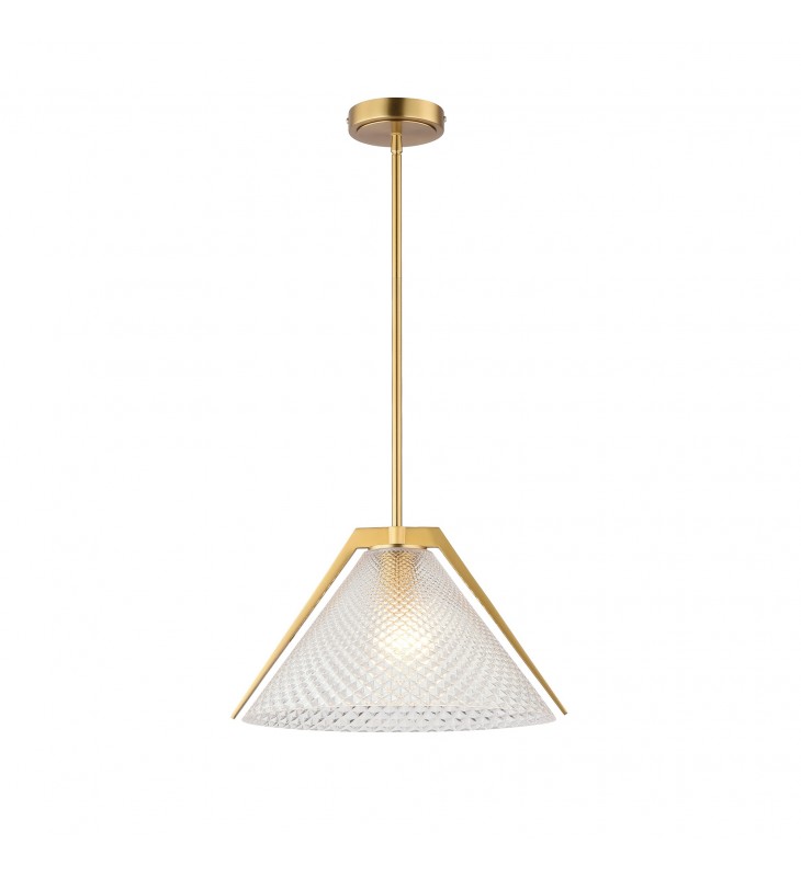 The Baltic Collection designed by Kevin Kraemer, features exquisite semi-transparent glassware with intricately etched diamond patterns, adding a touch of elegance to any table, island or bar. This single light pendant is shown in brass and comes with extra rods for easy height adjustability. (Also available with black framing).
