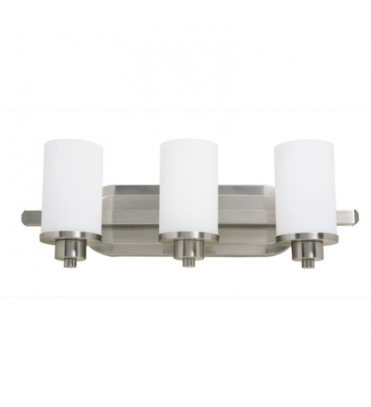 Parkdale 3 lite bathroom vanity features its clean and simple design complimented with opal white glassware in polished nickel finish\n