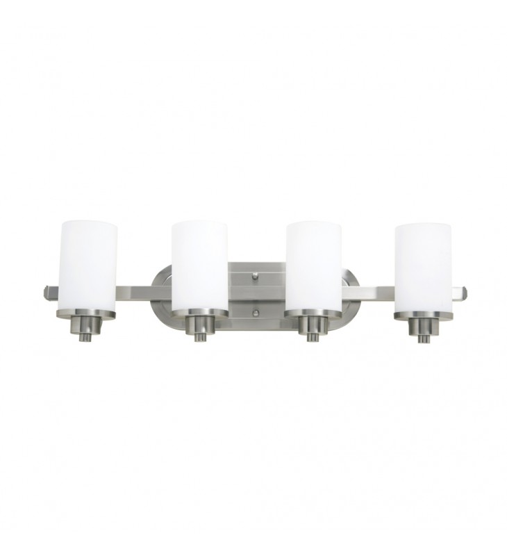 Parkdale 4 lite bathroom vanity features its clean and simple design complimented with opal white glassware in polished nickel finish\n